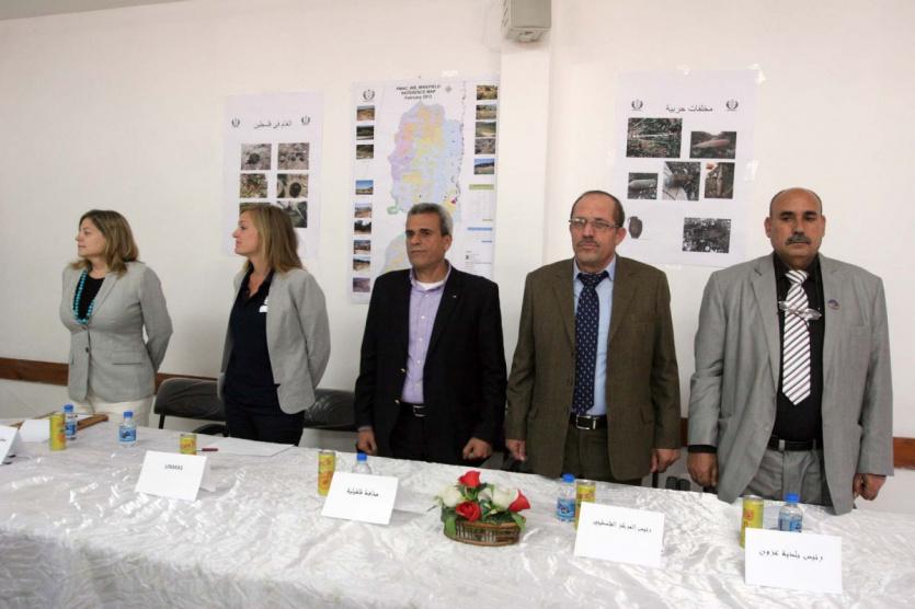 وفي كلمته رحب رئيس البلدية نمر عدوان بالحضور وأشاد بالجهود التي يقوم بها المركز الفلسطيني لمكافحة الألغام، والحفاظ على البيئة الفلسطينية من كل شر يحاك ضدها، ويدفع المزارع الفلسطيني للعمل في أرضه.