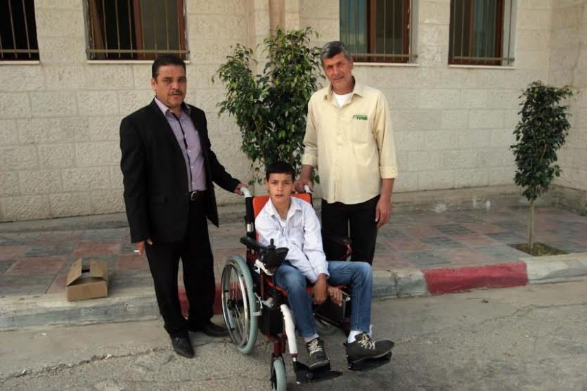 سلمت محافظة قلقيلية اليوم الثلاثاء الطفل حمزة إبراهيم زيد من مدينة قلقيلية كرسي كهربائي.