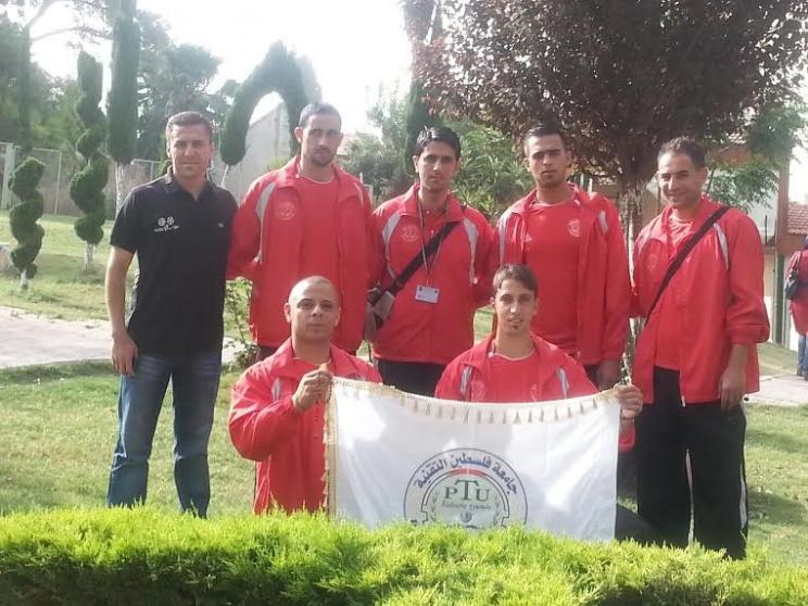 وضم وفد الجامعة ا. خليل أبو علبة من وحدة العلاقات العامة ( مشرف الوفد) و الطلبة احمد أبو شيخه ، محمد القدومي، أديب عبد الرازق، رامي جبر، حسيب موسى، مأمون بالي من قسم التربية الرياضية بالجامعة.