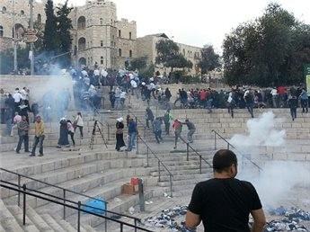 وافادت مراسلتنا بأن قوات الاحتلال اعتدت على المشاركين في المسيرة التي انطلقت من امام باب العامود بالمدينة واطلقت قنابل الصوت والغاز فيما اعتدت على المشاركين بالهراوات .