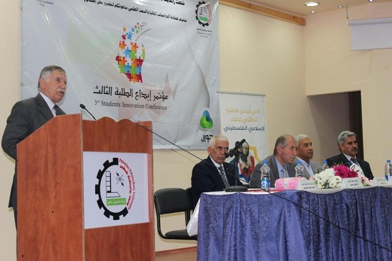وأكّد رئيس مجلس أمناء جامعة بوليتكنك فلسطين أحمد التميمي أنه ورغم الحصار الذي فرض على محافظة الخليل بشكل خاص وعلى الضفة الغربية بصفة عامة نشجع هذا الإبداع، لما له من أهمية في تعزيز وإبراز إبداعات طلبة الجامعات الفلسطينية وعلى حث الطلبة للإنتاج والمعرفة وأهمية تطبيقها وتدريب الطلبة على توثيق أفكارهم العلمية وعرضها والدفاع عنها بشكل مهني إضافة إلى إعطاء المجتمع المحلي والمشغلين والموظفين الفرصة للتعرف على مستوى الطلبة وقدراتهم وتسليط الضوء على مخرجات التعليم بطيفها الكامل.