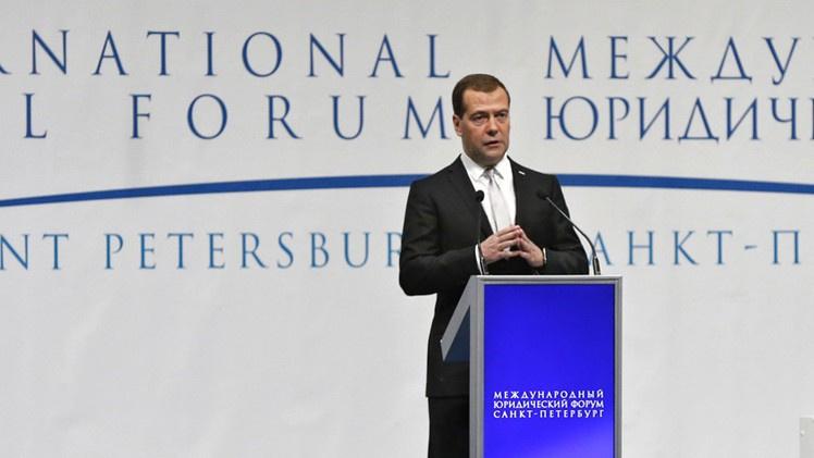 وأضاف رئيس الحكومة الروسية دميتري مدفيديف في كلمة له أمام منتدى القانون الدولي في سان بطرسبورغ الجمعة 20 يونيو/حزيران، أن الأمر لن يكون سهلا فيما يتعلق بالدعوى ضد الولايات المتحدة، وأن العقوبات ضد روسيا كانت أحادية الجانب ولا تستند إلى أي قانون أو عرف عام.