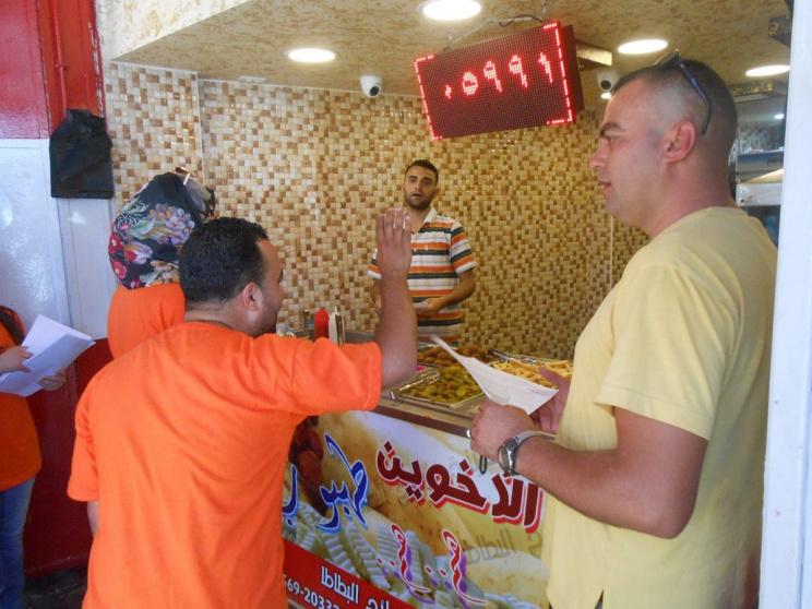 وبيّن الفروخ لـ"رايــة" :"هذه الحملة "قاطع عدوك" نقوم فيها بزيارة المحال التجارية والطلب منهم مقاطعة المنتج الإسرائيلي بشكل كامل، واستبداله بالمنتج الوطني".