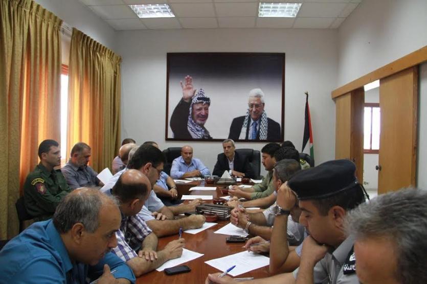 وأكد الحضور على ضرورة رفع العلم الفلسطيني على مؤسسات الدولة لما له من أهمية في تجسيد هوية الشعب الفلسطيني باعتباره محل عز وفخار لنا جميعا، وتم مناقشة تطوير المحافظة من خلال المشاريع التنموية، مشيرين الى اهمية متابعة حملة المفرقعات والبضائع المهربة ومراقبة السوق واشهار السلع.