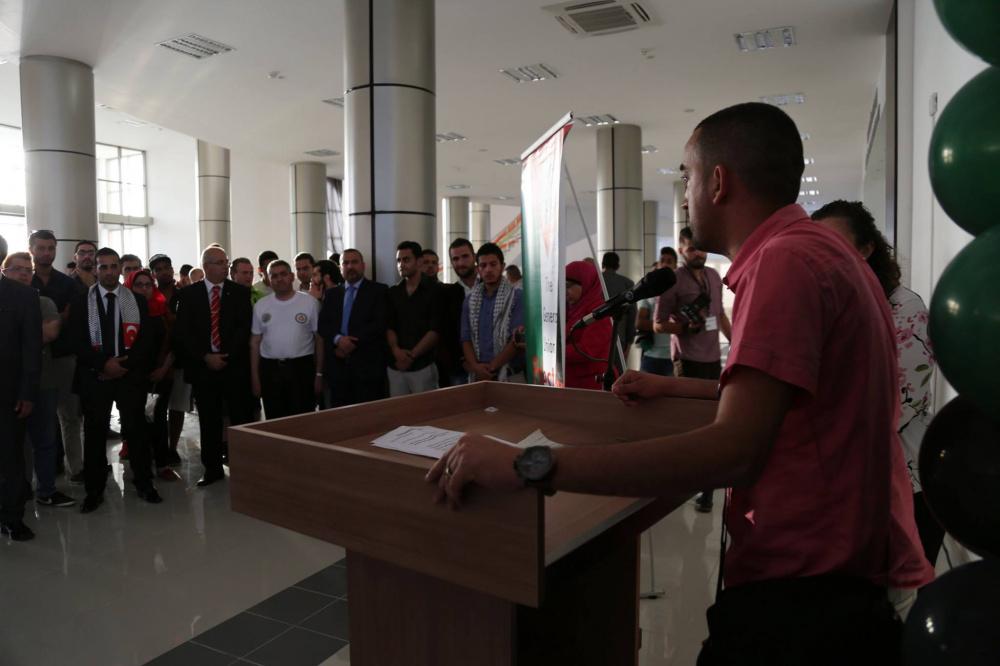 وافتتح المعرض نائب رئيس الجامعة، ونائب إتحاد رجال الأعمال الفلسطينيين في تركيا، زياد دهليز وبمشاركة مئات الطلبة.