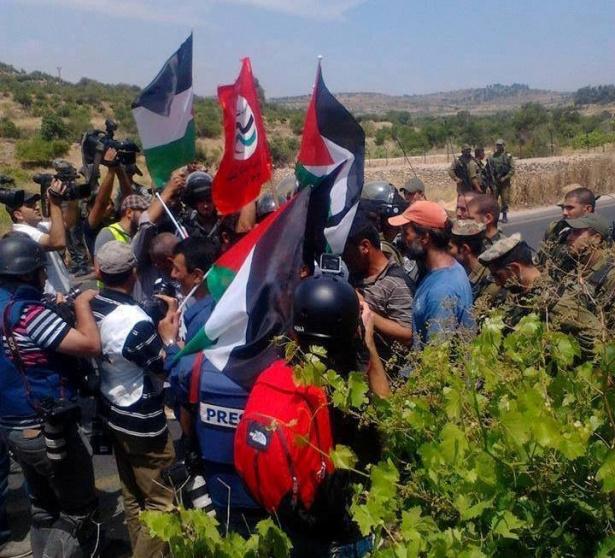ومنعت قوات الاحتلال المتظاهرين من الوصول الى المبنى ودفعتهم واعتدت عليهم بالضرب مما أدى إلى إصابة الناشط يونس عرار بخدوش جراء دفعه وإلقائه أرضا.