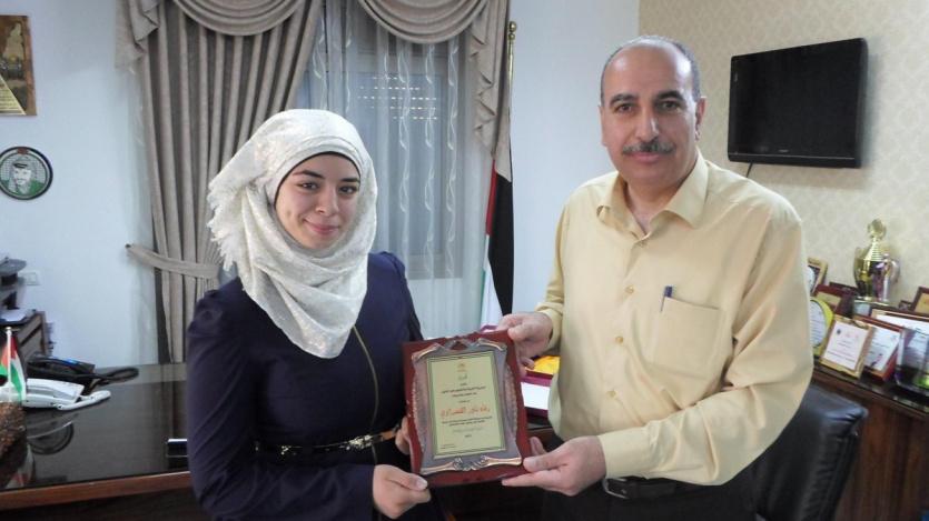 حيث كرم الطالب نسيم الطردة ممثل دولة فلسطين والحاصل على المركز الثالث على مستوى الوطن العربي، والطالبة رفاه القصراوي التي شاركت الطلبة الفائزين في تمثيل الوفد الفلسطيني في مدرسة البحث العلمي في دبي.