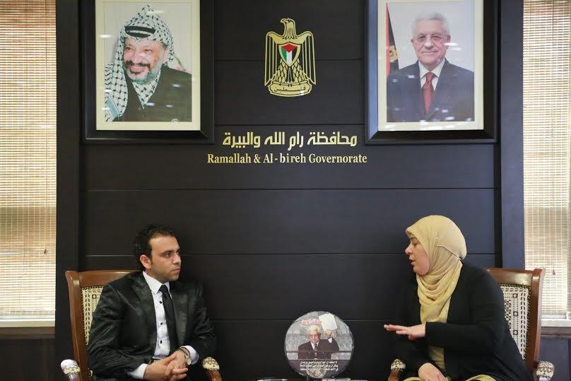 جاءت أقوال المحافظ خلال استقبالها اليوم في مكتبها للصحفي المصري احمد قنديل، والذي يجري عدة لقاءات بهدف جمع معلومات عن فلسطين والتعرف على الواقع المعاش على أرض الواقع.