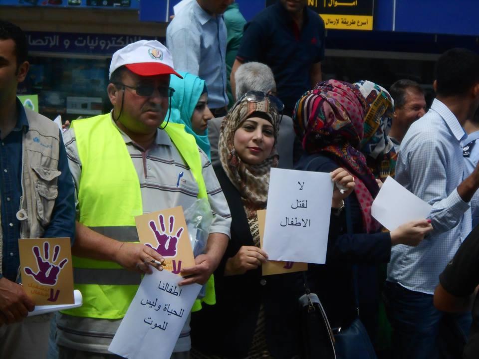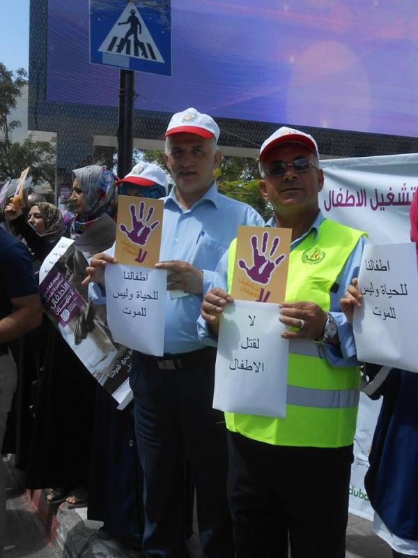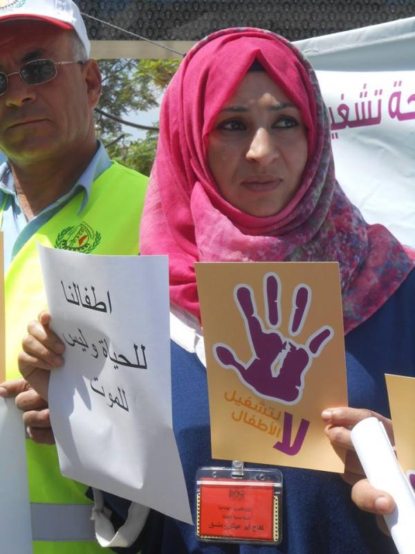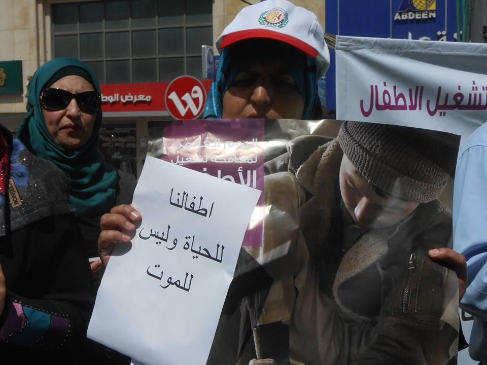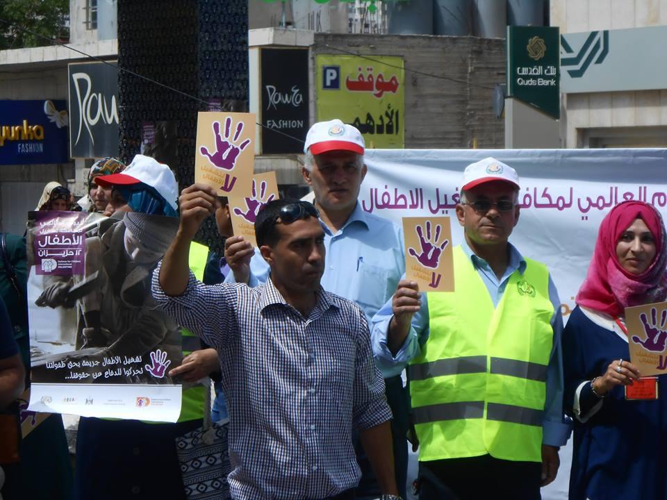 نظمت شبكة حماية الطفولة ونقابة الزراعة والصناعات الغذائية، وقفة لمكافحة تشغيل الأطفال واستغلالهم اقتصاديا، تحت عنوان "أخصائيون، مهنيون، إعلاميون ضد تشغيل الأطفال واستغلالهم اقتصاديا"، اليوم الخميس، على دوار ابن رشد وسط الخليل.