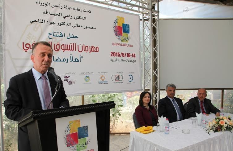وألقى ناجي كلمة بالنيابة عن دولة رئيس الوزراء د.رامي الحمدالله، نقل فيها تحيات رئيس الوزراء للقائمين على المهرجان وكافة الرعاة والشركات المشاركة. وقال إن المهرجان يعطي المنتج الوطني المساحة الكافية ليقوم بدوره في الاقتصاد من خلال منتجات بجودة عالية وسعر مقبول، مؤكداً على ضرورة تنظيم الأسواق الداخلية وتطبيق المعايير المسموح بها دولياً، والحد من إغراق السوق بالبضائع الإسرائيلية، والتأكد من التزامها بالمواصفات والمقاييس الفلسطينية، معتبراً أن هذه الإجراءات من شأنها أن تحد من وجود البضائع الإسرائيلية في السوق.