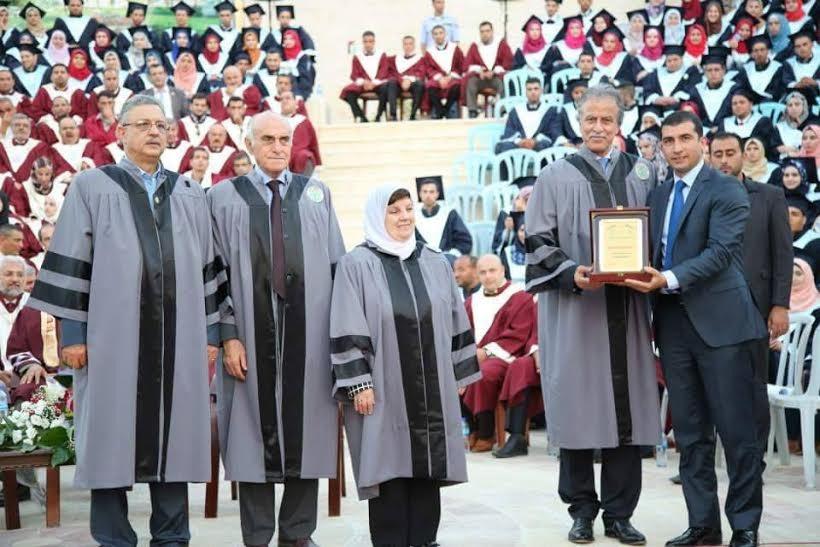 حيث قدم رئيس الجامعة أ.د. مروان عورتاني درعاً تكريماً تسلمه عضو مجلس ادارة الزيتونة منتصر كنعـان بحضور وزيرة التربية والتعليم العالي أ.د. خولة الشخشير ومحافظ طولكرم عصام أبو بكر ، ورجل الاعمال منيب المصري وحشد كبير من أهالي الطلبة وممثلي مجلس الجامعة وأعضاء المجلس التشريعي وممثلي المؤسسات الدولية والمحلية مؤسسات القطاع الخاص والمؤسسات الرسمية الأهلية والأمنية.