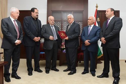 تسلم رئيس دولة فلسطين محمود عباس، اليوم الخميس، التقرير السنوي لهيئة مكافحة الفساد للعام 2014.