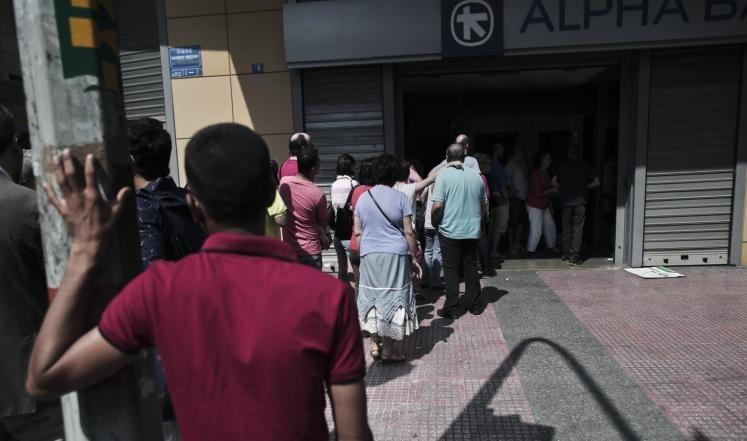 أعلن رئيس الوزراء اليوناني ألكسيس تسيبراس الأحد عن إغلاق مصارف البلاد وبورصة أثينا اليوم الاثنين، وفرض قيود على حركة رؤوس الأموال بعدما هرع اليونانيون في اليومين الماضيين إلى أجهزة الصرف الأوتوماتيكية لسحب أقصى ما يمكنهم من أموال تحسبا لدخول اليونان في حالة إفلاس وانهيار مالي.