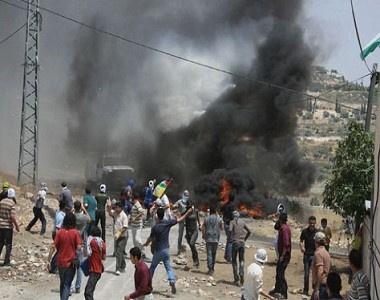 أصيب عشرات المواطنين بالاختناق واشتعلت النيران في عدة دونمات من أراضي قرية بلعين غرب رام الله، إثر مهاجمة جنود الاحتلال لمسيرة سلمية خرجت من مركز القرية في يوم العيد ضد بناء الجدار والمستوطنات على أراضيهم.