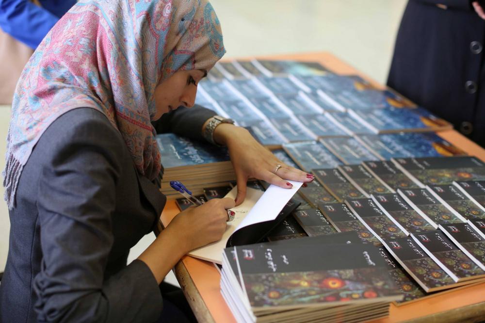 بدورها قرأت الكتاتبة فاطمة خليل مقتطفات من كتابها الاول بعنوان "ونعتاد الغياب" وهو كتاب نصوص جاءت مواضيعه تحت أربعة أبواب، وهي الرحيل، الاشتياق، الحب، وآخر فصل كان خربشات.