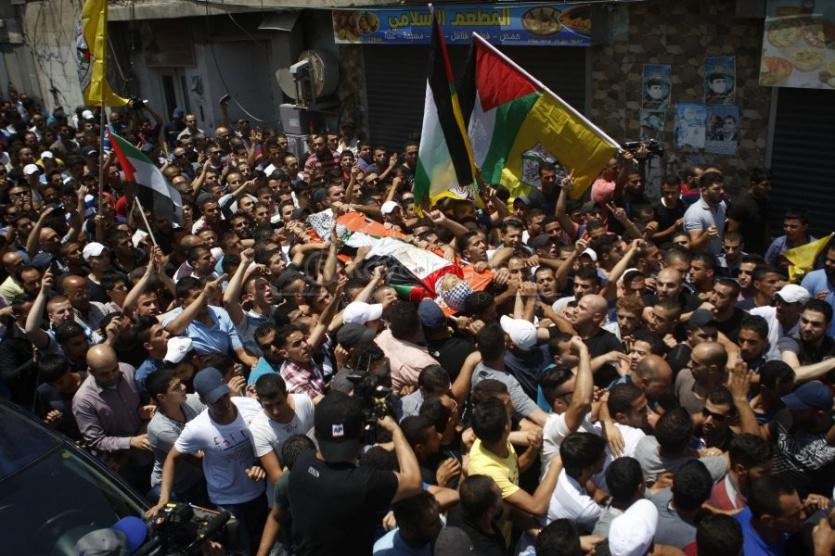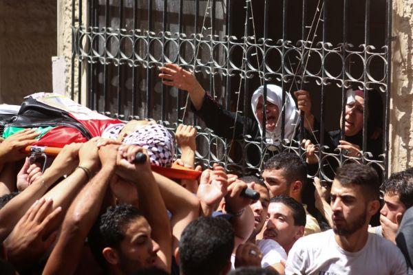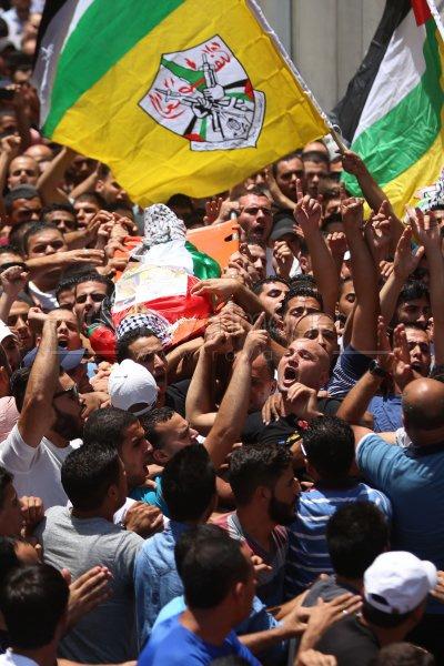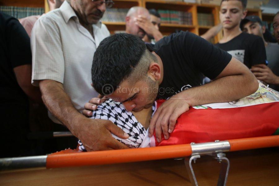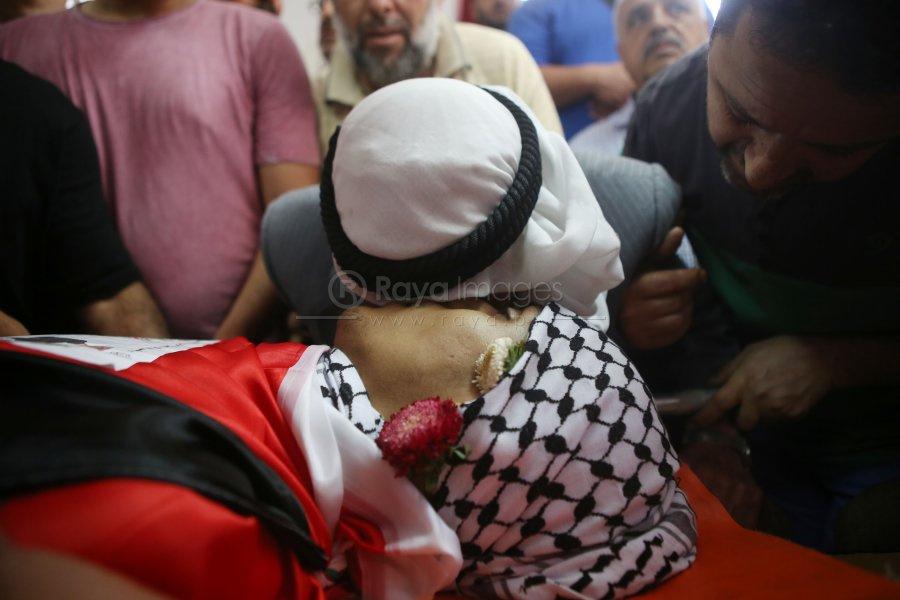 ولف الجثمان بالعلم الفلسطيني، وحمل على الأكتاف، وسط هتافات منددة بالممارسات الإسرائيلية، وصيحات الإنتقام والتكبيرات، فيما أطلق مسلحون ملثمون الرصاص الحي في الهواء خلال مراسم التشييع.