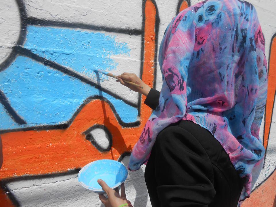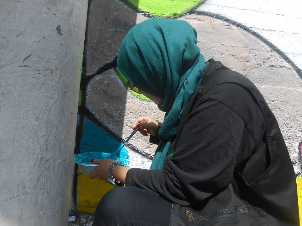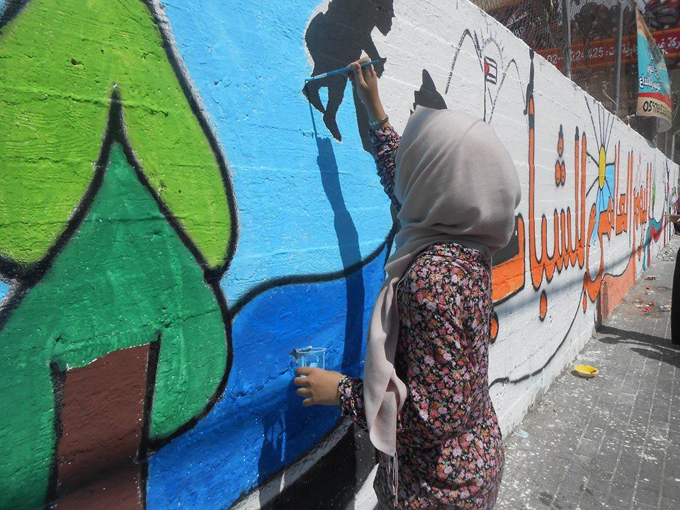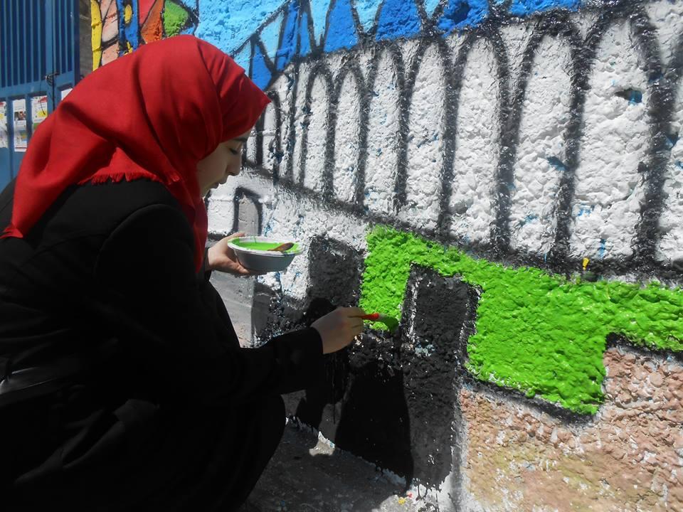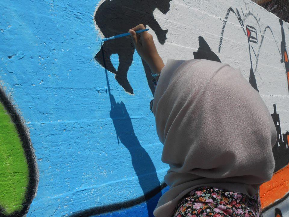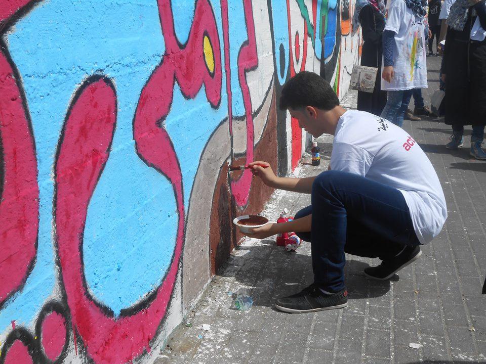 بالصور: المبادرات الشبابية ترسم جدارية "حريتي كرامتي" في الخليل