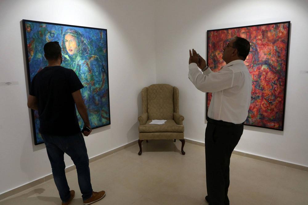 الفنان شفيق رضوان حاضر بلوحاته رغم منع الاحتلال قدومه ليفتتح معرضه