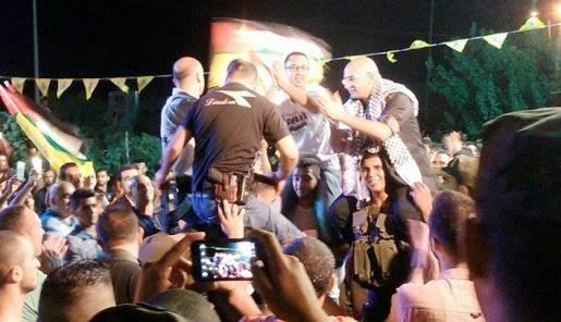 ونظمت حركة 'فتح' اقليم جنين، والمؤسسة الأمنية، والهيئة العامة لشؤون الأسرى والمحررين والفعاليات الوطنية والاهلية، مهرجانا حاشدا لاستقبال المحرر أبو هزيم.