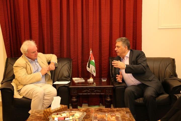 بحث سفير دولة فلسطين في لبنان أشرف دبور الأوضاع في مخيمات اللاجئين الفلسطينيين مع مدير عام وكالة غوث وتشغيل اللاجئين الفلسطينيين 'الأونروا' في لبنان ماتياس شمالي، في مقر سفارة دولة فلسطين، اليوم الجمعة، وخاصة ما يشهده مخيم عين الحلوة.