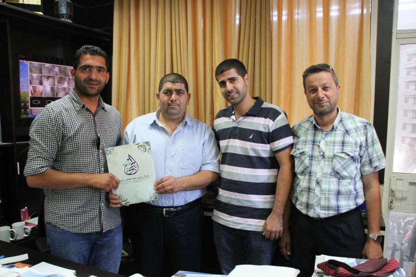 وقع مدير عام شركة الحجة للعقار والاستثمار السيد ربحي الحجة في مقر مكتبه بمدينة رام الله مذكرة تفاهم مع شركة "ساند كو" لمواد البناء والاعمار ممثلة بالسادة نور خشان وداوود طنوس وذلك لتوريد كافة مستلزمات مواد البناء للمشاريع الخاصة بشركة ربحي الحجة الممتدة على مختلف مناطق رام الله والبيرة