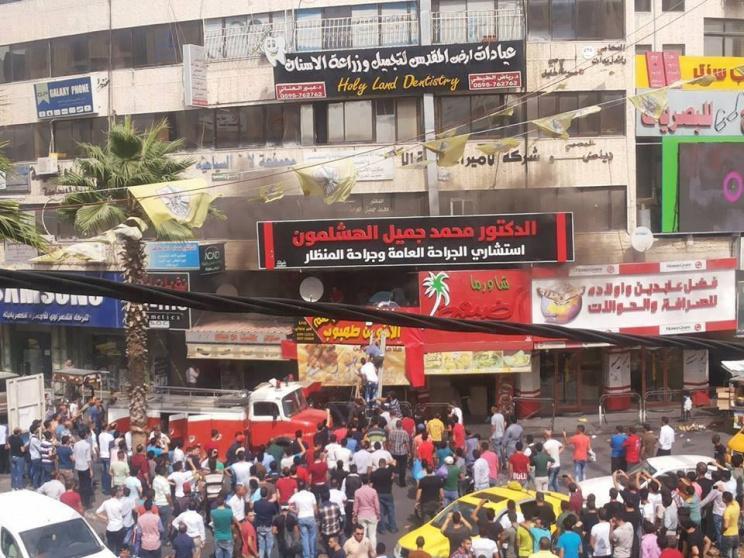 شب حريق في مطعم شاورما الضيعة، اليوم السبت، على دوار المنارة وسط مدينة الخليل.