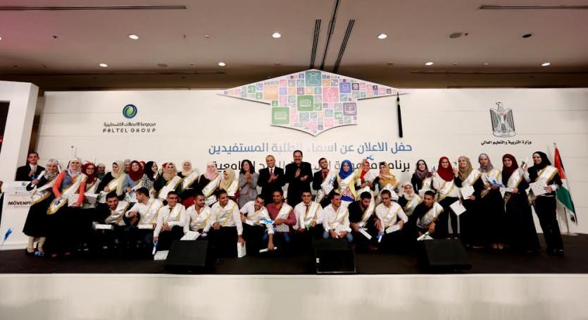 أعلنت مجموعة الاتصالات الفلسطينية أسماء الطلبة الفائزين في برنامج المجموعة للمنح الجامعية للعام2015 والذي تنفذه مؤسسة مجموعة الاتصالات للتنمية المجتمعية للسنة السادسة على التوالي ، وبشراكة مع وزارة التربية والتعليم العالي، حيث تمّ توزيع منح المجموعة الدراسية على الطلبة المتفوقين خلال حفل نظمته المجموعة في فندق الموفنبيك بمدينة رام الله و قطاع غزة عبر تقنية الفيديو كونفرس، بحضور وزير التربية و التعليم العالي د. صبري صيدم ، والرئيس التنفيذي لمجموعة الاتصالات عمار العكر .