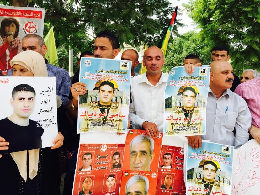 جاء ذلك خلال اعتصام تضامني مع الأسرى المضربين والأسير المريض سامي أبو دياك والذي تفاقمت حالته الصحية مؤخراً، ونظّم الاعتصام نادي الأسير والجبهة الشعبية واللجنة الشعبية لإطلاق سراح الأسرى وكل من لجنة الأسرى ومركز حريات وكتلة نضال المحامين، في ميدان الشهيد ياسر عرفات في جنين.