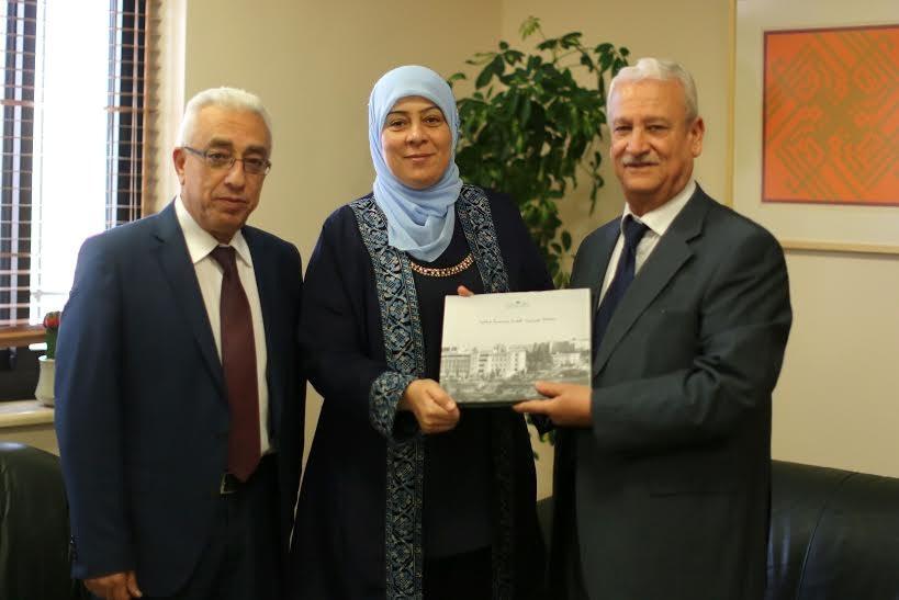 زارت محافظة رام الله والبيرة د. ليلى غنام، ورئيس غرفة تجارة وصناعة المحافظة خليل رزق، اليوم الأربعاء 16 أيلول 2015، جامعة بيرزيت، والتقيا رئيسها د. عبد اللطيف أبو حجلة وعميد شؤون الطلبة أ. محمد الأحمد.