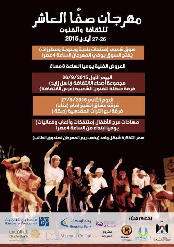 يشار إلى أن مهرجان صفا العاشر الذي ينظمه مركز حنظلة الثقافي يقام برعاية إعلامية من شركة راية للإعلام والنشر.