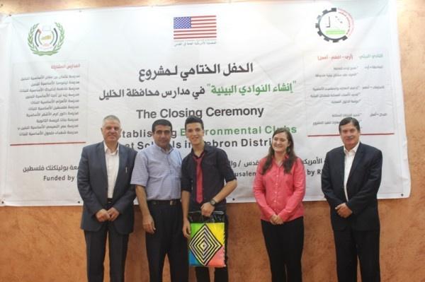اختتمت جامعة بوليتكنك فلسطين اليوم الخميس، مشروع 'إنشاء النوادي البيئية' في مدارس محافظة الخليل، بتمويل من القنصلية الأميركية العامة في القدس، وتنفيذ وحدة أبحاث الطاقة البديلة والبيئة في الجامعة.
