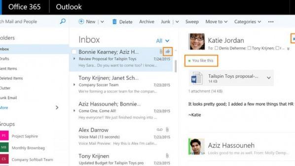 وسيتم إضافة ميزة الإعجاب بشكل أولي إلى خدمة Outlook على شبكة الإنترنت والتي كانت تعرف سابقاً باسم تطبيق Outlook Web، وسوف يبدأ طرح الميزة ابتداء من 30 سبتمبر إلى مشتركي Office 365 النسخة الأولى الذين لديهم خطط اشتراك الأعمال التجارية والمتضمنة خدمة Exchange عبر الإنترنت.