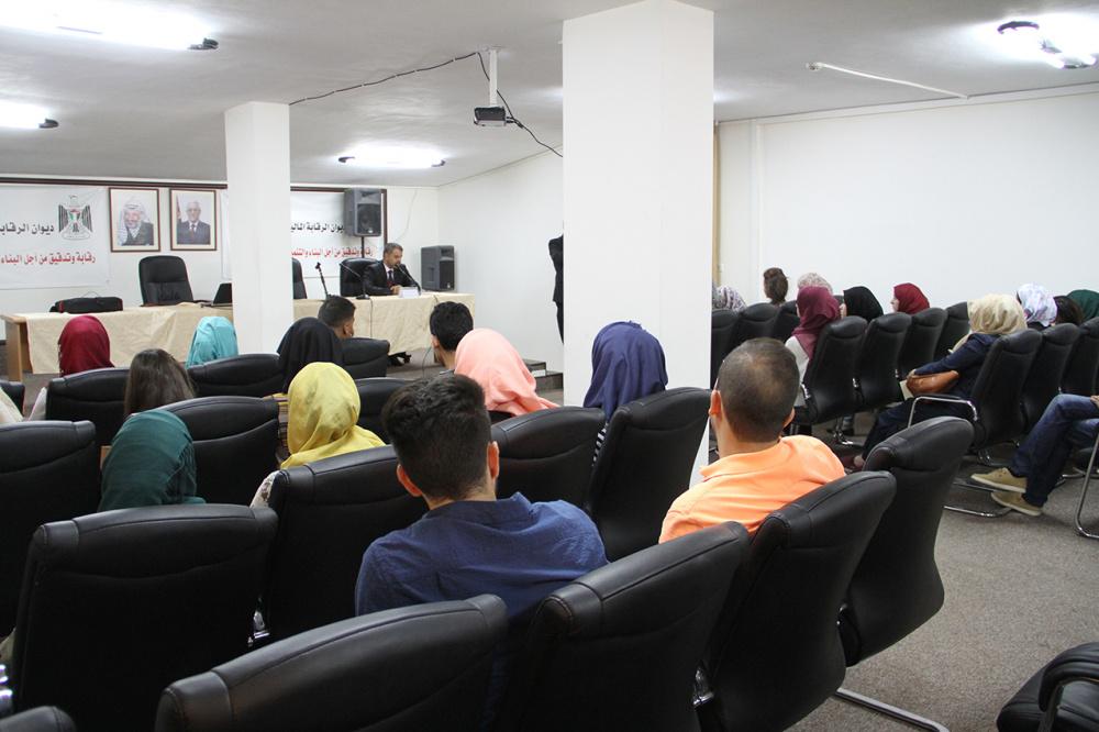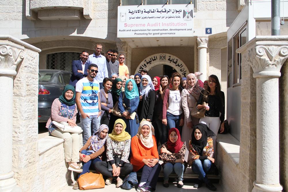 حيث التقى الطلبة بمعالي الأستاذ إياد تيم رئيس الديوان، الذي رحب بالحضور وأكد على أن الديوان مؤسسة دستورية والجهاز الأعلى للرقابة في فلسطين، وان أهداف الديوان تكمن في ضمان الاستقرار المالي وكشف أي مخالفات قانونية تضر بالمال العام والإدارة، بالإضافة إلى التأكد من قيام المؤسسات بأعمالها وفق القانون.