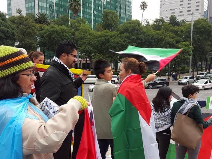 شارك حشد من أبناء الجالية الفلسطينية والعربية وممثلي منظمات وأحزاب مكسيكية متضامنة، يوم أمس، في الوقفة الإحتجاجية التي نظمتها جمعية التضامن مع الشعب الفلسطيني، وذلك في ميدان الإستقلال وسط العاصمة المكسيكية مكسيكو ستي، تنديداً وإحتجاجاً على ممارسات الحكومة الإسرائيلية المتطرفة، والهجمة الشرسة التي تشنها قوات الإحتلال الإسرائيلية والمستوطنين على أبناء شعبنا الأعزل، وتضامناً مع حقوقه الوطنية المشروعة بالدفاع عن أرضه وكرامته وحريته.
