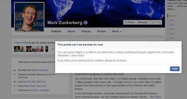 إليك ماذا سيحدث، إذا شعرت بالملل من الموقع وحاولت أن تصب غضبك على مارك وتضغط على زر "Block" حتى لا يأتيك تحديثاته ومنشوراته فإن مارك لن يسمح لك أبدا بذلك ومهما حاولت ستنتهى بالفشل في النهاية.