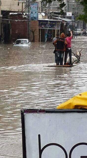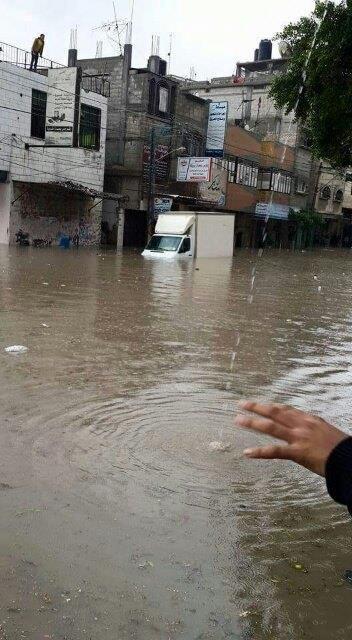 وافاد شهود عيان لمراسلنا، أن منسوب المياه نتيجة غزارة الامطار بخانيونس ارتفع الى قرابة (80 سم) مما أدى الى غمر عدد من المنازل والمحلات التجارية وخاصة في منطقة قيزان النجار ومنطقة خزاعة شرق المدينة.