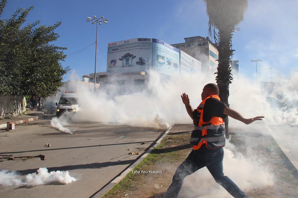 وأصيب العشرات بحالات الاختناق من الغاز المسيل للدموع، خلال مواجهات عنيفة اندلعت في منطقة رأس الجورة، بين الشبان الفلسطينيين وجيش الاحتلال الاسرائيلي، عقب المسيرة التي خرجت من مسجد الحرس لمدخل الخليل الشمالي.