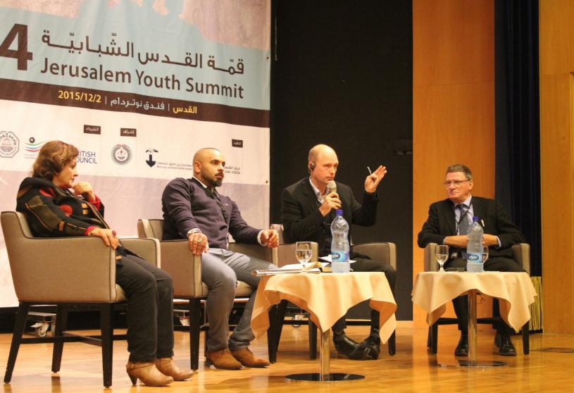 وبعد كلمة مبعوث الامم المتحدة للسكان ملدينوف نظمت جلسة حوار مفتوحة ما بين الشباب المقدسي وممثلين المؤسسات المانحة والمؤسسات الرسمية الفلسطينية، والتي تمثلت بوكيل وزارة شؤون القدس سلوى هديب ومدير صندوق الامم المتحدة للسكان اندرس تومسن ورئيس المجلس الثقافي البريطاني برندن مكشاري، حيث تم توجيه الاسئلة المباشرة لهم من خلال ميسر القمة ومن خلال الشباب المشاركين، وتم ادارة نقاش مفتوح على مدار ساعة ونصف.