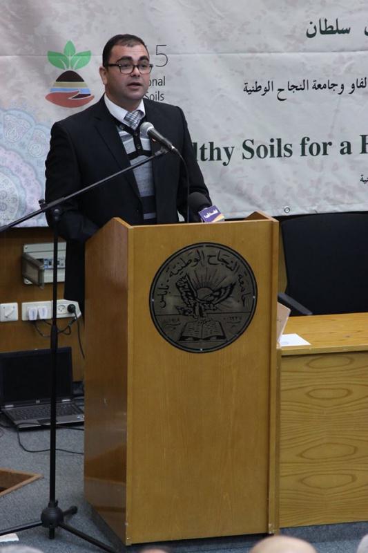 وأوضح المهندس محمد الشحبري في كلمةٍ له عن وزارة الزراعة الفلسطينية "يأتي هذا اللقاء انسجاماً مع إعلان الجمعية العامة للأمم المتحدة في دورتها الثامنة والستين باعتبار عام 2015 السنة الدولية للتربة، وذلك لما تتعرض له التربة من تدهور وانخفاض في الإنتاجية، وسوء في الاستخدام، الأمر الذي أثر على وظائفها المتمثلة في إنتاج البضائع بشكلٍ رئيس".