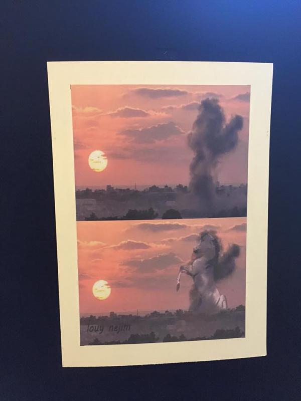 وقالت الفنانة بشرى شنان احد المشاركين،" أن المعرض افكار وجهود ذاتية.. صورنا من خلاله "الحرب الأخيرة على غزة" من خلال تصوير الانفجارات و الرسم عليها.. استخدمنا الحاسوب وبرامج الفوتوشوب والرسام خلال عملنا.. لم نعتمد فقط على الرسم اليدوي.
