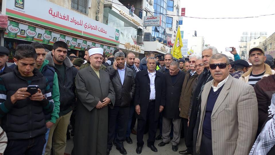 بدوره ثمن المحافظ جهود مؤسسات وفعاليات محافظة قلقيلية التي احتشدت اليوم للتعبير عن تمسكها بالثوابت الفلسطينية والتفافها حول قيادتها التاريخية ممثلة بالرئيس محمود عباس ، داعيا للاستمرار في نهج المقاومة السلمية لتحقيق أهداف الشعب الفلسطيني المتمثلة بالحرية والاستقلال، مطالبا بضرورة التمسك بالوحدة الوطنية وإفشال مخططات الاحتلال الهادفة لشق وحدة الشعب الفلسطيني.