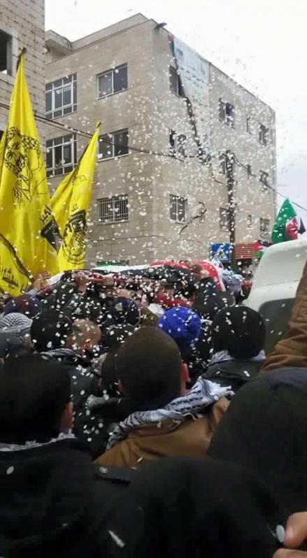 وانطلق موكب التشييع من مجمع فلسطين الطبي، مرورا بجامعة القدس المفتوحة، حيث كان يدرس الشهيد، قبل أن يحمل الجثمان في سيارة إسعاف وينقل إلى قرية عارورة.