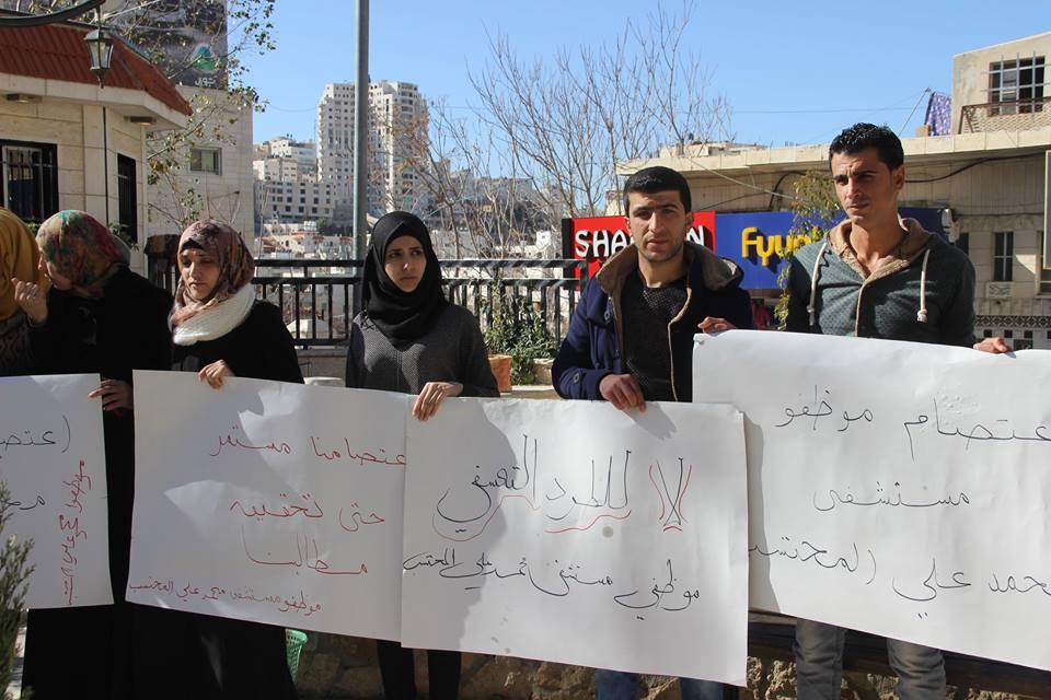 بالصور... وقفة احتجاجية لموظفي مستشفى المحتسب بالخليل
