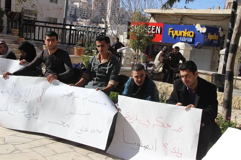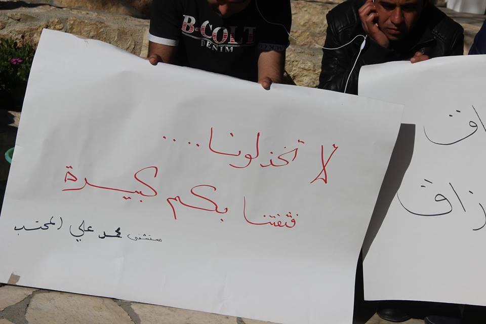 اعتصم موظفو مستشفى محمد علي المحتسب، اليوم الأحد، على دوار بن رشد وسط مدينة الخليل احتجاجاً على قرار وزارة الصحة الفلسطينية بعدم دمجهم ضمن موظفي الوزارة بعد ضم المستشفى لمديرية الصحة.