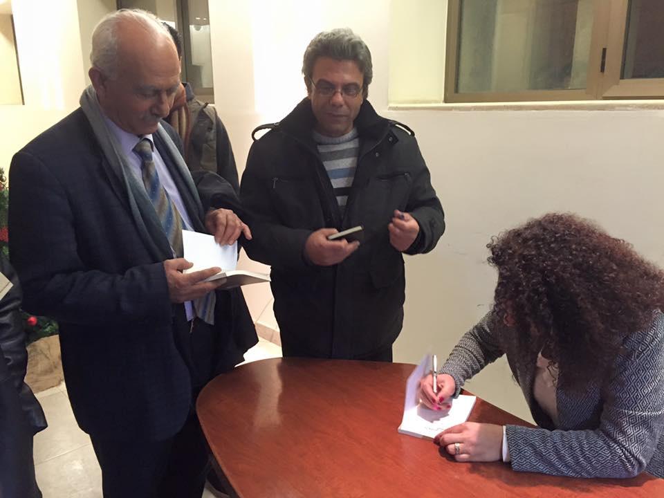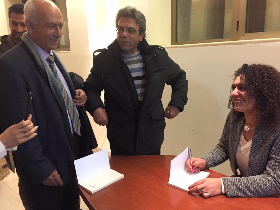 ووقعت حليوى نسخا من كتابها للحضور بعد نهاية الامسيه .