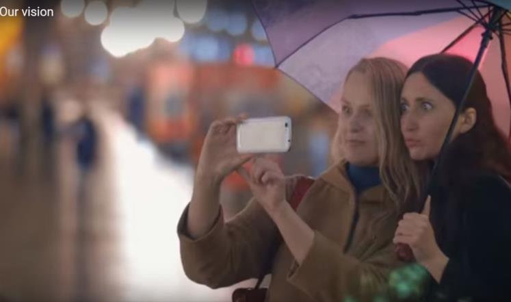 ففي الثانية 83 تظهر فتاتان تحاولان التقاط صورة "سلفي" بهاتف يبدو شديد الشبه بالصور المسربة للنموذج الأولي من هاتف سي 1 العامل بنظام أندرويد، وفي الثانية 87 تظهر فتاتان تستعرضان الصور في ما يبدو أنها كاميرا هاتف.