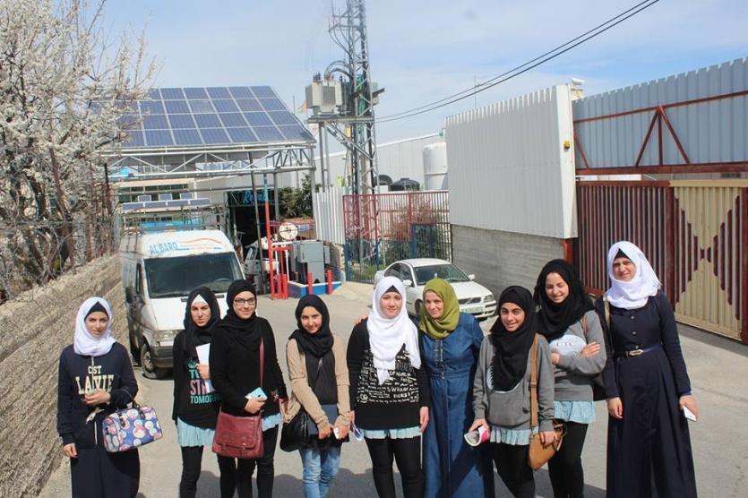 حيث تعرفن الطالبات على اقسام الادارة المختلفة من اقسام مالية وادارية ومبيعات، باشراف من مدير المصنع السيد عماد رجوب.
