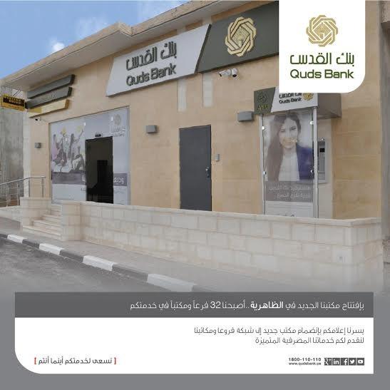 بنك القدس يباشر أعماله في مكتبه الجديد في الظاهرية