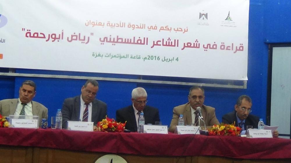 نظمت اللجنة الثقافية بجامعة الاقصى بغزة وبالتعاون مع كلية الآداب والعلوم الإنسانية, وقسم اللغة العربية بالجامعة ندوة أدبية بعنوان: "قراءة في شعر الشاعر رياض محمد أبو رحمة يوم الاثنين في قاعة المؤتمرات بالجامعة.