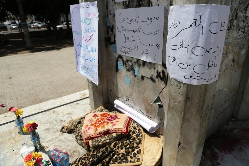 الشاب سعيد لولو أكد استمراره في الاعتصام حتى الاستجابة لمطالبه في توفير فرصة عمل يتمكن من خلالها العيش بكرامة، رغم كل محاولات اضعافه وانهاء اضرابه، وهو يستعد للبدء بغسل معدته "بالماء والملح" خشية من تعفنها، على غرار ما يفعله الأسرى في سجون الاحتلال، حسب ما يؤكد.